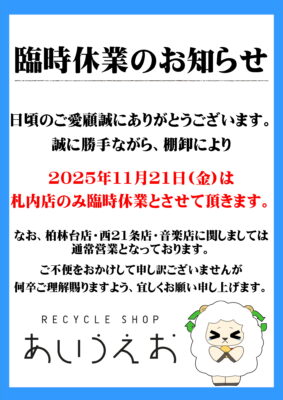 柏林台店・札内店・西21条店による対象プライス割引セール開催