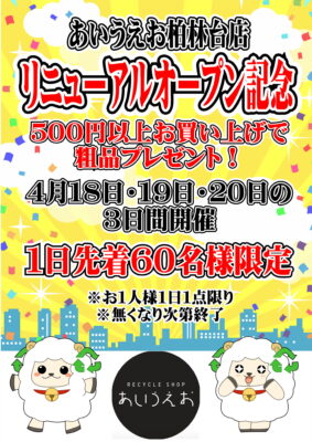 リサイクルショップ「あいうえお」では、Yahoo!ショッピングやYahoo!オークション、楽天市場、デジマートなどで、商品を出品しています。